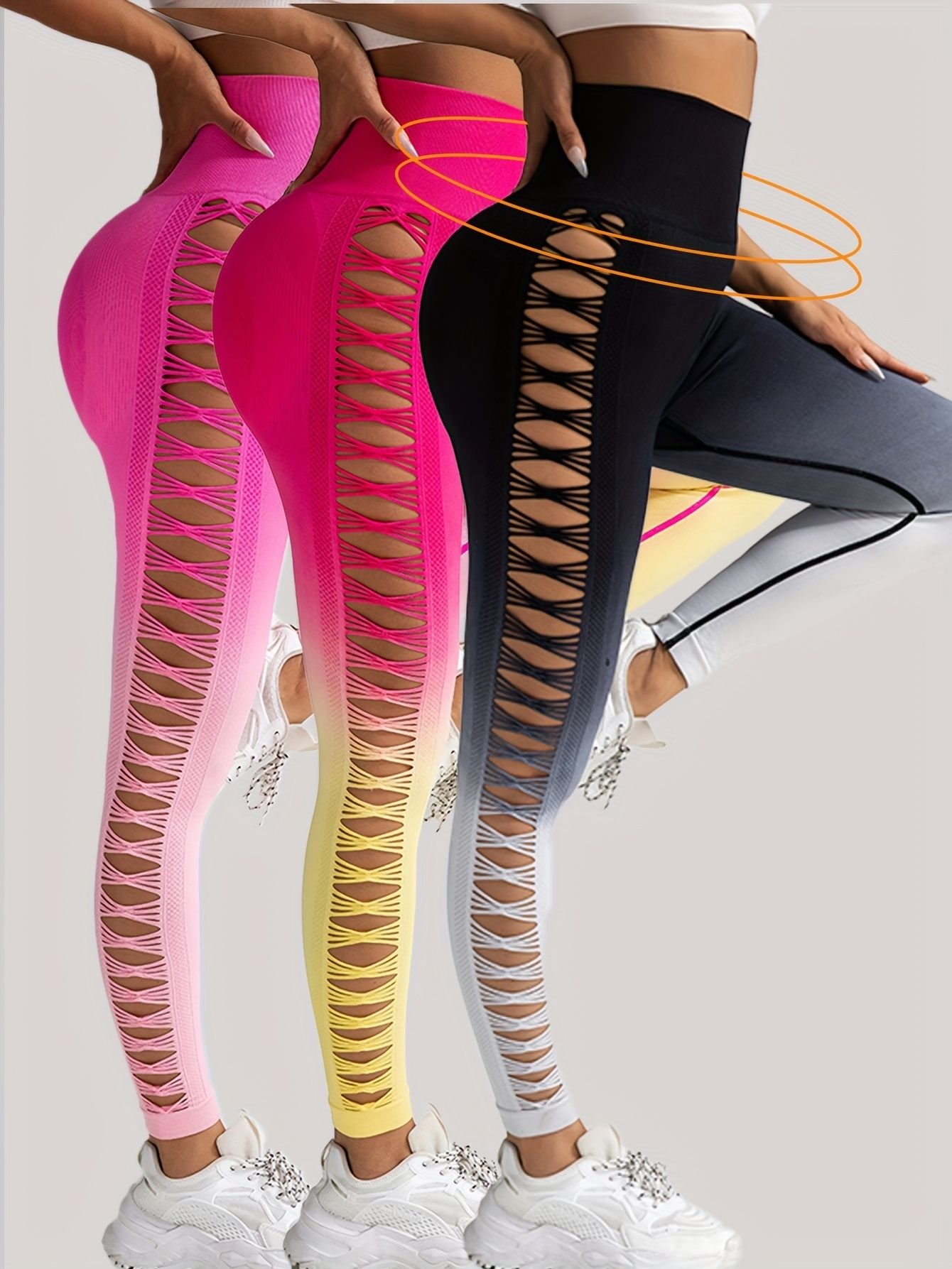 Home > 3 Pack Women's Gradient Color Butterfly Hollow High Waist Butt Lifting Long Fitness Pants, Seamless Leggings For Women High Waist Yoga Pants